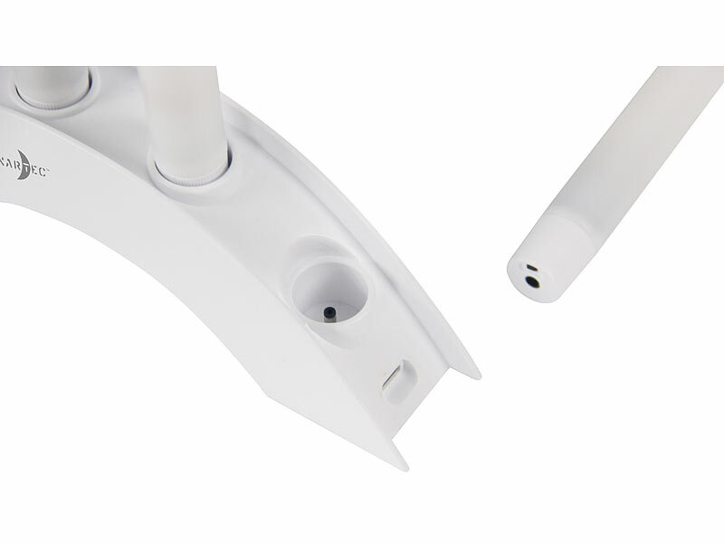 - Maße (Ø x H): je 2 x 23,5 cm, Bogen-Ladestation: je 21 x 7 x 4 cm, Gesamtgewicht: je 1.009 g