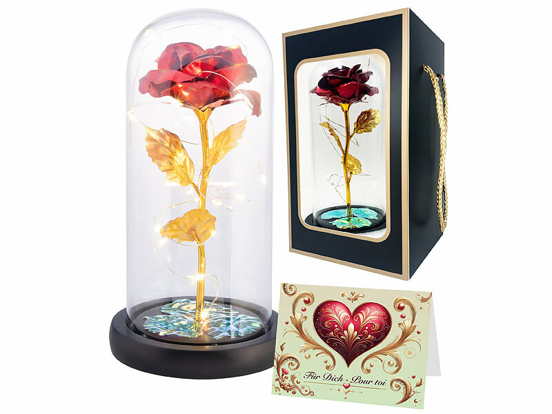 - Rose unter Glaskoppel inklusive Batterien, Geschenkbeutel und deutscher Anleitung
