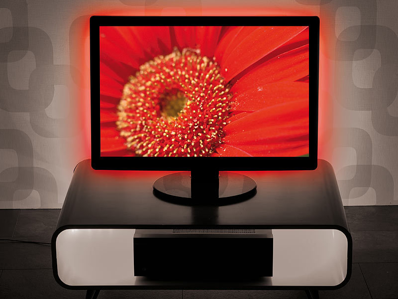 TV-Hintergrundbeleuchtung leichtgemacht: Kleben Sie einfach die 4 Lichtleisten auf die Rückseite Ihres Flachbild-Fernsehers. Je eine Leiste rechts, links, oben und unten. Jetzt nur noch per USB verbinden. Schon kann Ihr neues TV-Erlebnis losgehen!Tauchen Sie intensiver in das Geschehen ein: Das stimmungsvolle Licht steuern Sie bequem per Fernbedienung. Schalten Sie beim Fußball auf Grün, genießen Sie Krimis und Action-Kracher in Rot oder Blau. So erzeugen Sie die perfekte Atmosphäre und steigern gleichzeitig Ihr Fernseherlebnis! Sie werden das Licht gar nicht mehr abstellen möchten!