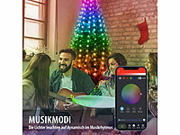 Für innen wie außen: 10 Girlanden mit insgesamt 180 RGB-IC-LEDs bringen Ihren Weihnachtsbaum im Wohnzimmer, auf dem Balkon oder auch im Garten zum Leuchten.Moderne RGB-IC-Technologie: Jede einzelne Girlande kann mehrere Farben gleichzeitig darstellen. 6 unterschiedliche Licht-Modi schaffen spektakuläre Effekte und machen Ihre bunte Beleuchtung zum absoluten Highlight. Bei Bedarf erstellen Sie auch ganz einfach Ihr eigenes Licht-Programm.