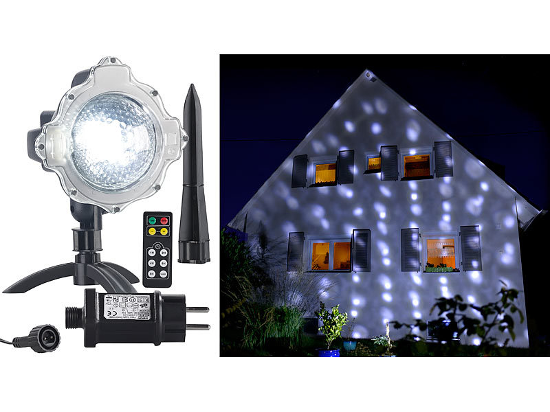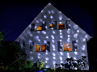 bewegte Snowmotion • LED-Projektoren aussen • Solar-Laser-Projektoren mit Akkus und Sternenmeeren • Gartenlaser • Schneeflocken Dekorationen Lichteffekte Gartenlichter Partys Feier Feste Festivals