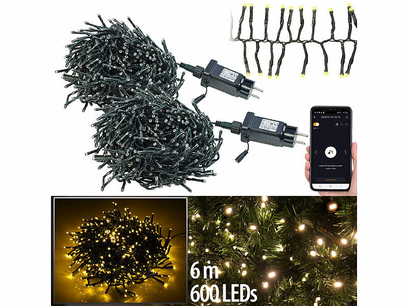 Genießen Sie stimmungsvolle Momente: Ganze 600 LEDs sorgen für angenehm warmweißes Licht. Wählen Sie einfach aus 8 Leucht-Modi den für Sie passenden - z.B. Dauerleuchten für den gemütlichen Grillabend oder wild blinkend für die Geburtstags-Party. Aktivieren Sie auch die Musiksteuerung und genießen Sie dank integriertem Mikrofon Licht im Takt Ihrer Lieblingssongs.Lichterglanz innen wie außen: Ihre Leucht-Dekoration ist spritzwassergeschützt. So verschönern Sie auch Balkon, Terrasse oder den Garten. Und mit 6 Watt ist sie besonders sparsam - das freut Ihren Geldbeutel und die Umwelt.