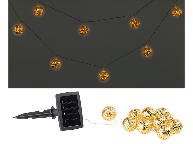 Stimmungsvolle Deko-Beleuchtung für Ihre Gartenparty u.v.m. 10 goldfarbene Kugeln. Mit Dämmerungs-Sensor.