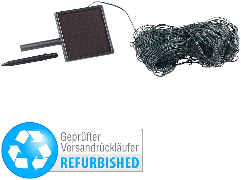 - LED-Lichternetz mit Solarpanel inklusive Erdspieß und deutscher Anleitung