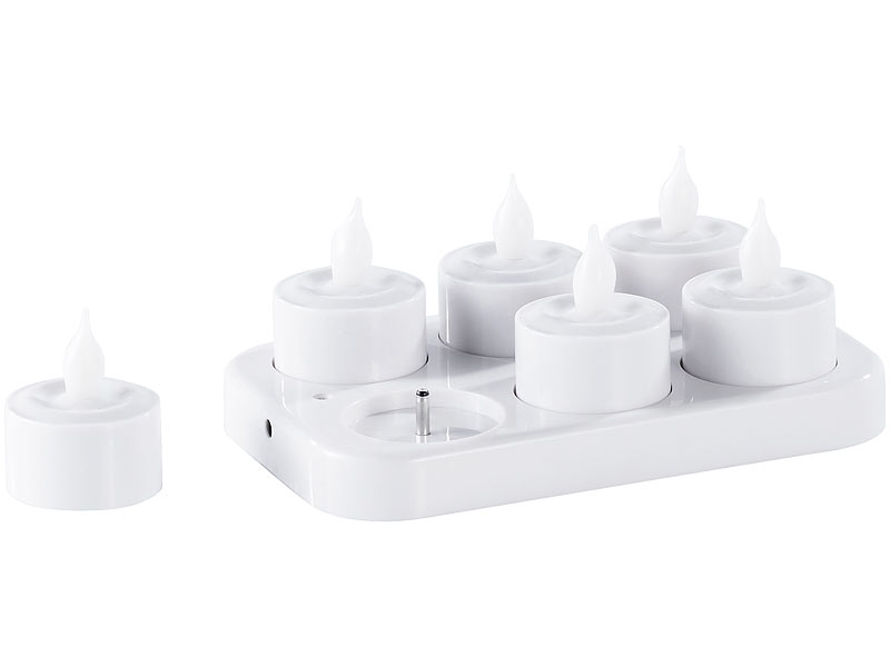 - 6 wiederaufladbare LED-Teelichte, mit Schalter auf der Unterseite