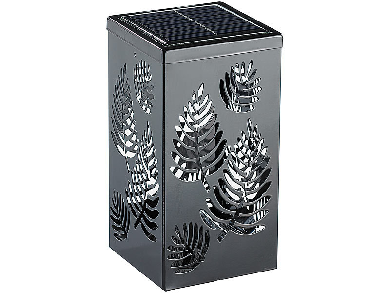 Die Solar-Leuchte überrascht Sie mit einem beeindruckenden Lichterspiel.Das Edel-Design mit der hochglänzenden Metalloberfläche macht eine gute Figur. Und das eingestanzte florale Motiv bereichert die Umgebung der Lampe mit einem aufsehenerregenden Lichtmuster!
