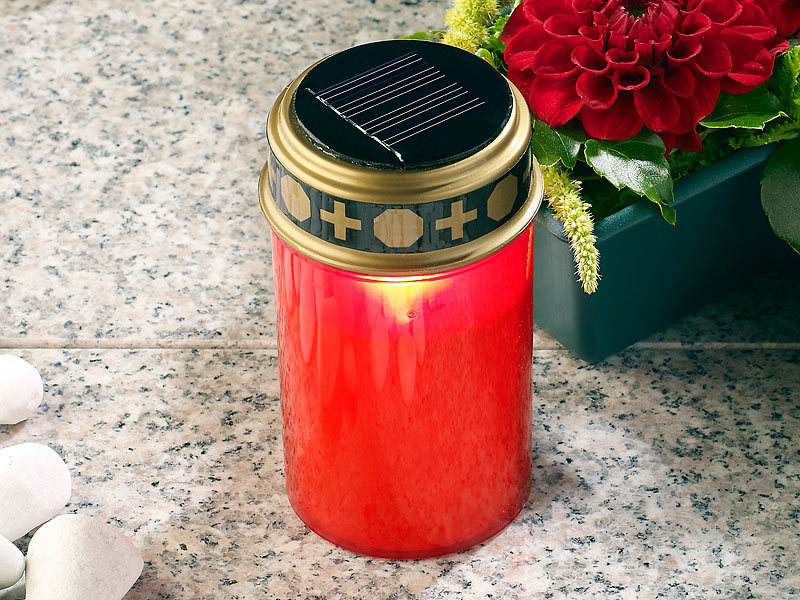 Ein Grablicht spendet Trost: Es sendet einen stillen Gruß und verschönert die letzte Ruhestätte auf besondere Weise.Täuschend echtes Candlelight: Dieses Solarmodell ist dank flackernder LED kaum von einer echten Kerze zu unterscheiden. Der integrierte Akku wird tagsüber mit Sonnenenergie geladen, selbst wenn es bewölkt ist.