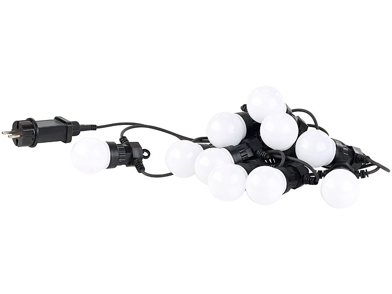 Genießen Sie stimmungsvollen Retro-Look in klassischer Glühbirnen-Form: Damit verleihen Sie jedem Fest das gewisse Etwas. Dank sparsamer LED-Technik sogar extra-energieeffizient!Verschönern Sie Haus und Garten: Denn Ihre Party-LED-Lichterkette ist spritzwassergeschützt. Schon tauchen Sie Terrasse, Party-Keller u.v.m. in angenehm warmweißes Licht und erleben unvergessliche Momente mit Freunden und Familie.