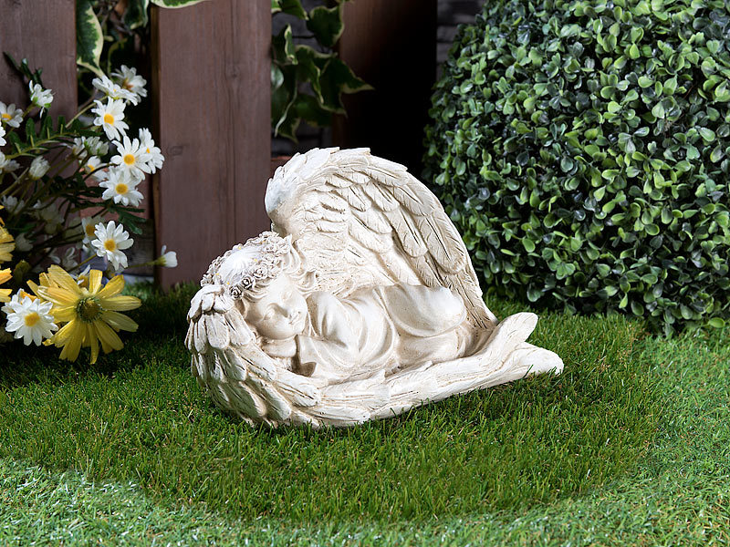 Geben Sie Ihren Abenden träumerischen Glanz: Sorgen Sie für stilvolle Dekoration und schöne Stunden! Wenn es abends früh dunkel wird, verbreitet der schlafende Schutzengel träumerische Stimmung.Sammelt Licht bei Tag, leuchtet bei Nacht: Dank-Solar-Panel ist der Schutzengel stets bereit, Sie mit seinem warmen Schein zu erfreuen. Sie benötigen weder Batterien noch einen Stromanschluss.