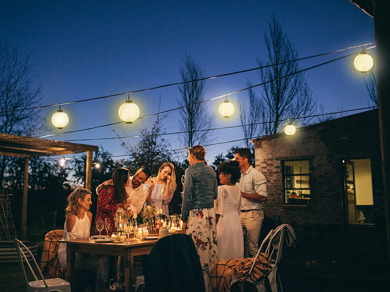 Deko rund ums Haus: Dank Akku-Betrieb mit Solarstrom-Versorgung sind Sie völlig unabhängig von der Steckdose. Am praktischen Haken hängen Sie Ihre Lampions flexibel auf.