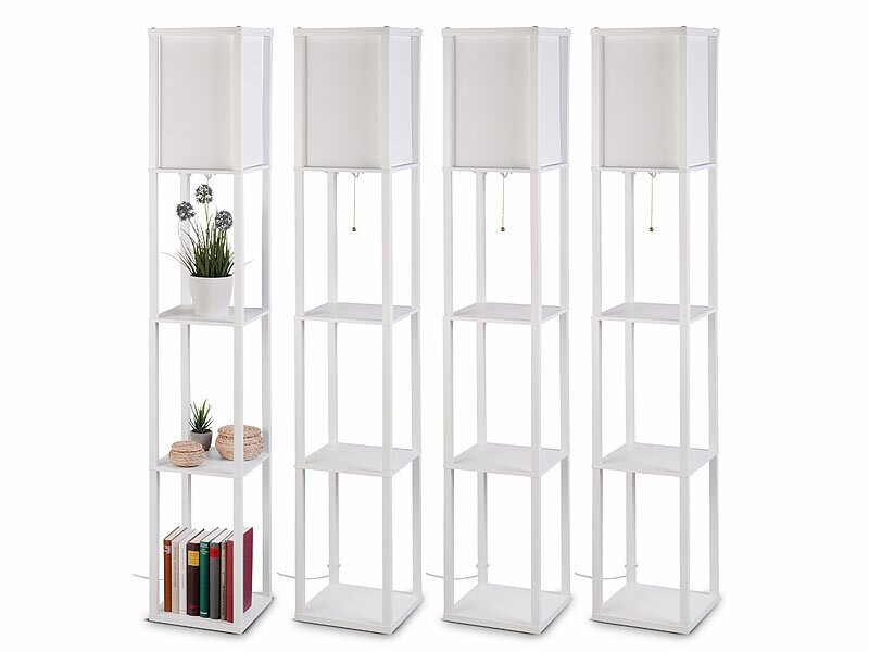 - 4er-Set Stehleuchten mit Lampenschirm im obersten Regalfach